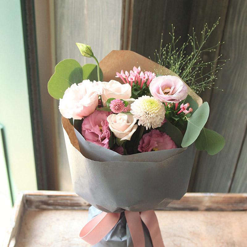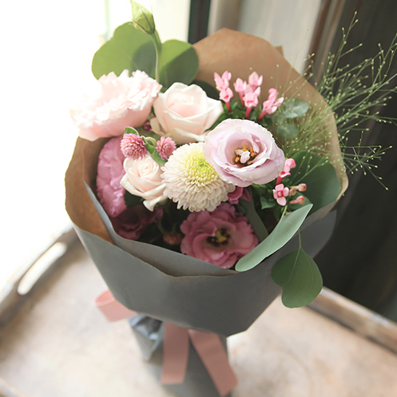 因你而幸?!?枝戴安娜粉玫瑰韓式花束