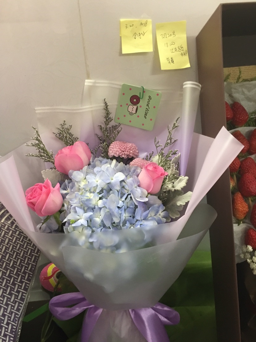 花束很新鮮,送得很快,也沒有損壞的,當(dāng)天下單2小時(shí)就給我送來了,老婆喜歡她能高興就是我最大的幸福!感覺價(jià)格也挺合適的,可以下次再給她驚喜