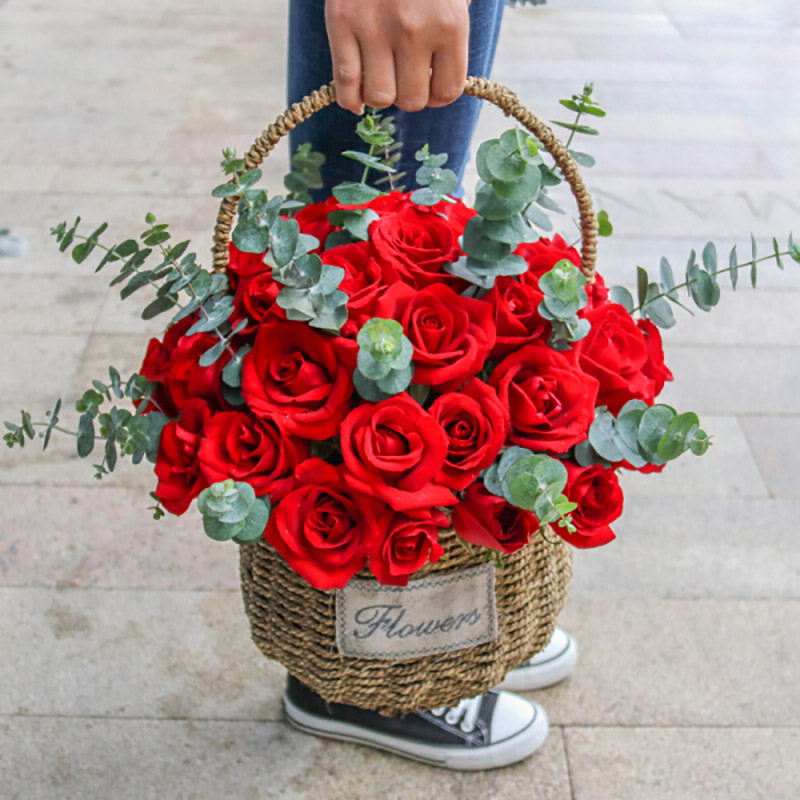 女朋友的生日,送的很及時,她剛好下課,她很喜歡鮮花,自己把花籃拆了,放在了瓶子里,保持了很久