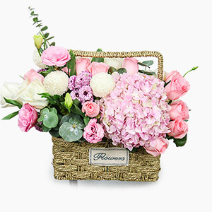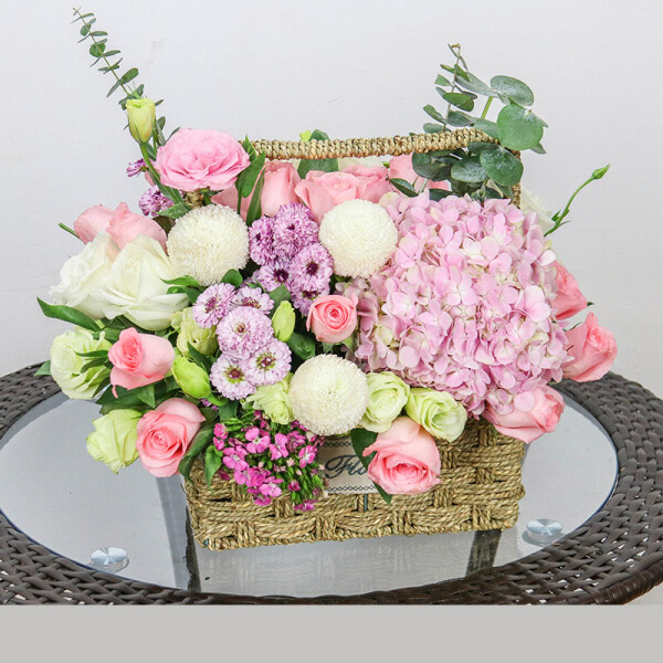 花籃一大早就收到了,質(zhì)量非常的不錯,花材都很多,插得也豐滿大氣,謝謝店家的服務(wù),有需要一定再來購買