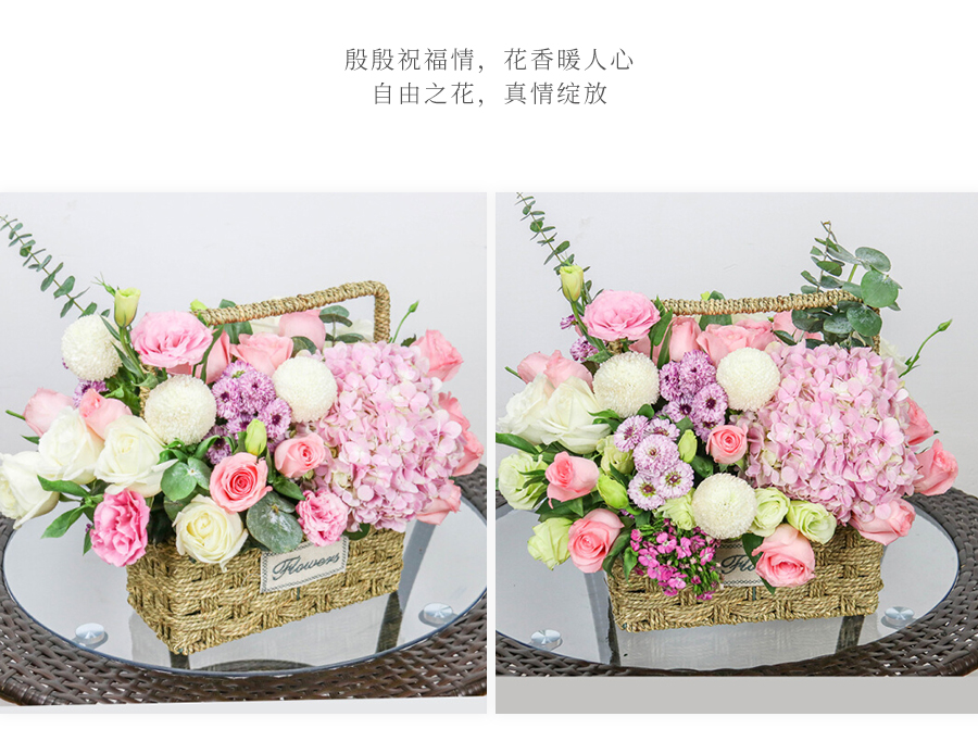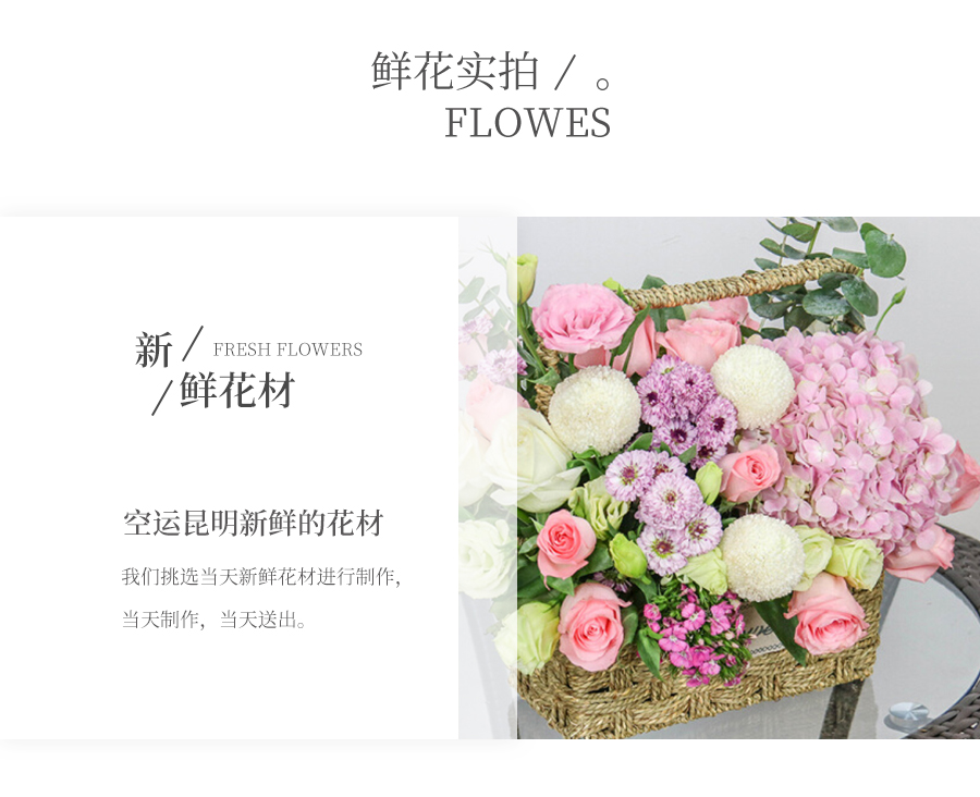 由于鮮花包扎的花藝師不同,可能在花束的形式和搭配上與圖片略有小的區(qū)別,但我們保證鮮花的主花材品種、新鮮程度、數(shù)量、顏色與說明一致,感謝您的理解。