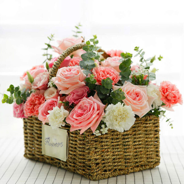 無(wú)私關(guān)愛·23枝粉康乃馨手提鮮花花籃