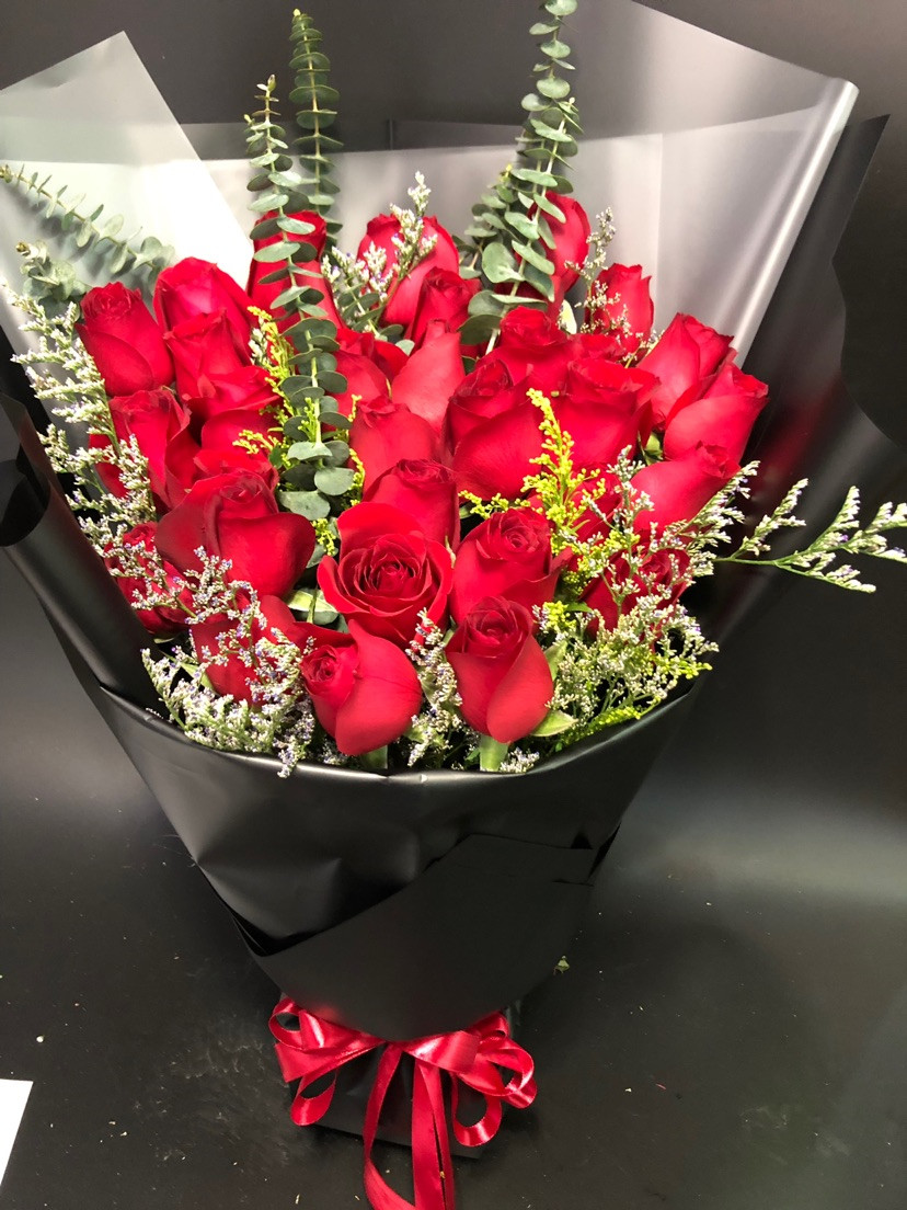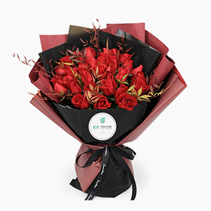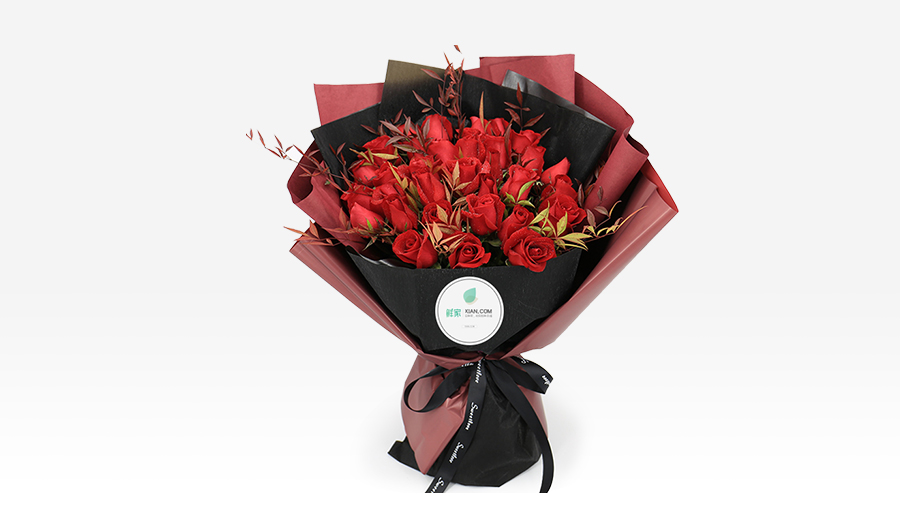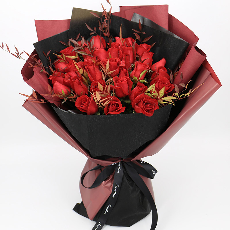 天長(zhǎng)地久·99枝黑紗紅玫瑰韓式花束