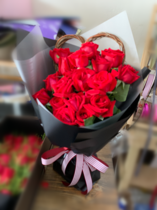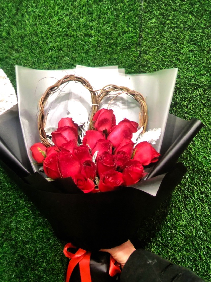 天長(zhǎng)地久·99枝黑紗紅玫瑰韓式花束
