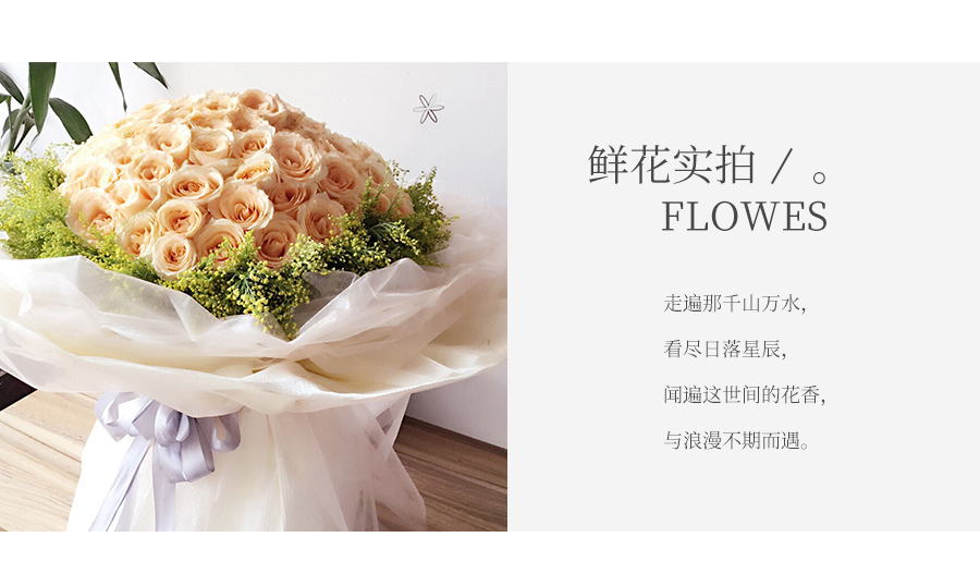 由于鮮花包扎的花藝師不同,可能在花束的形式和搭配上與圖片略有小的區(qū)別,但我們保證鮮花的主花材品種、新鮮程度、數(shù)量、顏色與說明一致,感謝您的理解。