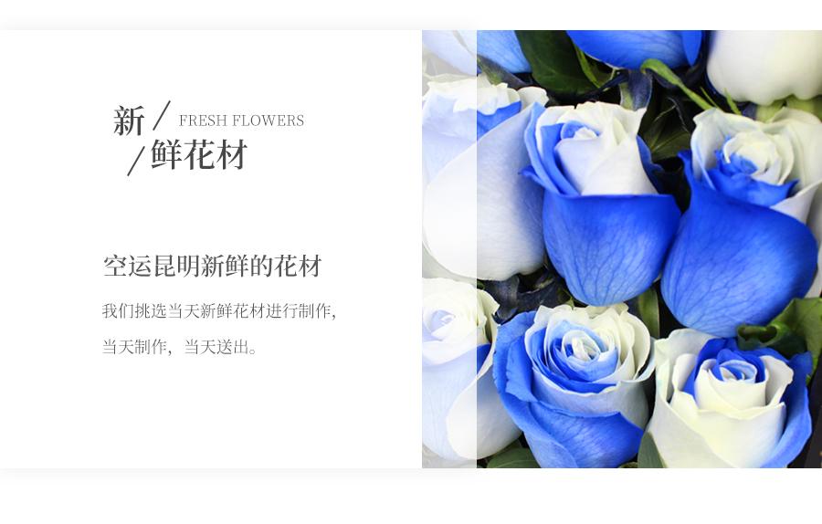 由于鮮花包扎的花藝師不同,可能在花束的形式和搭配上與圖片略有小的區(qū)別,但我們保證鮮花的主花材品種、新鮮程度、數(shù)量、顏色與說(shuō)明一致,感謝您的理解。