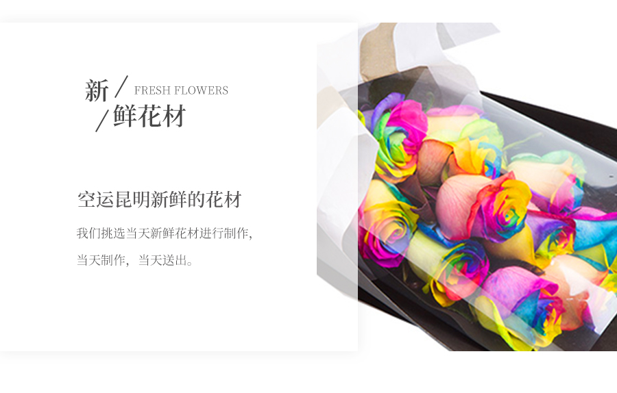 由于鮮花包扎的花藝師不同,可能在花束的形式和搭配上與圖片略有小的區(qū)別,但我們保證鮮花的主花材品種、新鮮程度、數(shù)量、顏色與說明一致,感謝您的理解。