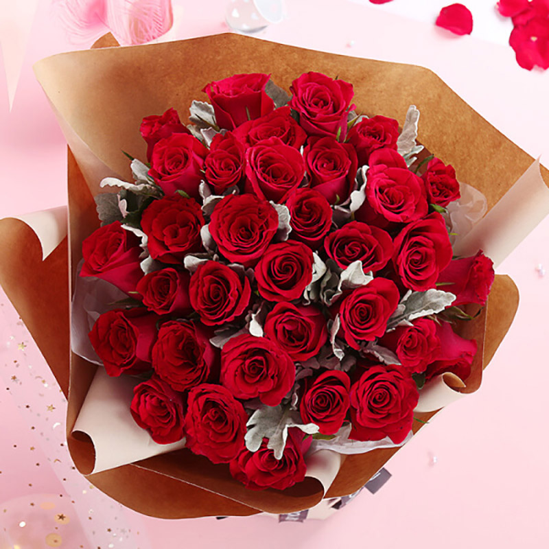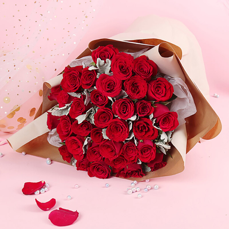 用愛守護(hù)你·33枝粉玫瑰韓式花束