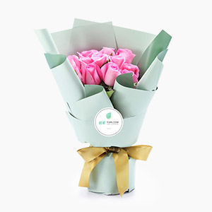 因你而幸?!?枝戴安娜粉玫瑰韓式花束