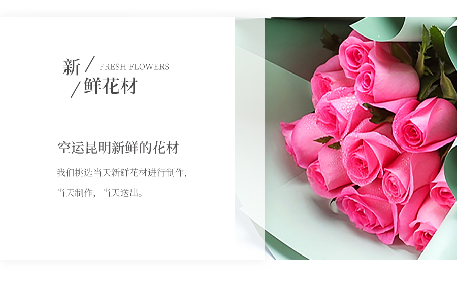 由于鮮花包扎的花藝師不同,可能在花束的形式和搭配上與圖片略有小的區(qū)別,但我們保證鮮花的主花材品種、新鮮程度、數(shù)量、顏色與說(shuō)明一致,感謝您的理解。