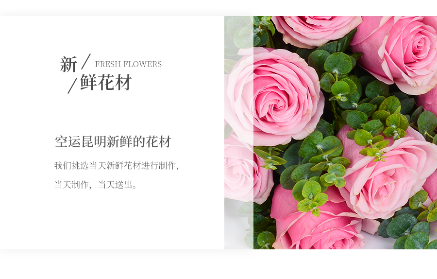 由于鮮花包扎的花藝師不同,可能在花束的形式和搭配上與圖片略有小的區(qū)別,但我們保證鮮花的主花材品種、新鮮程度、數(shù)量、顏色與說明一致,感謝您的理解。