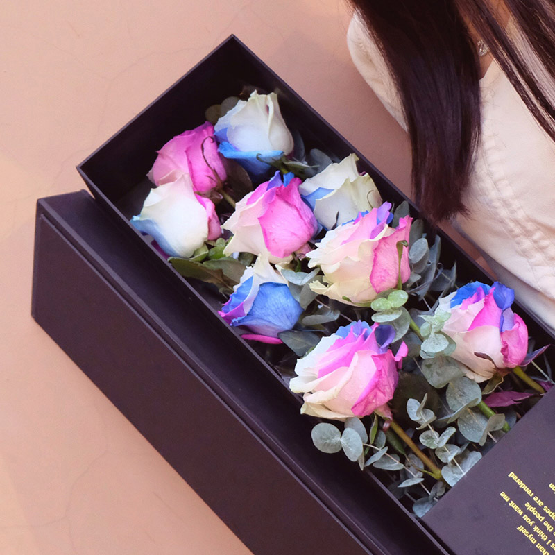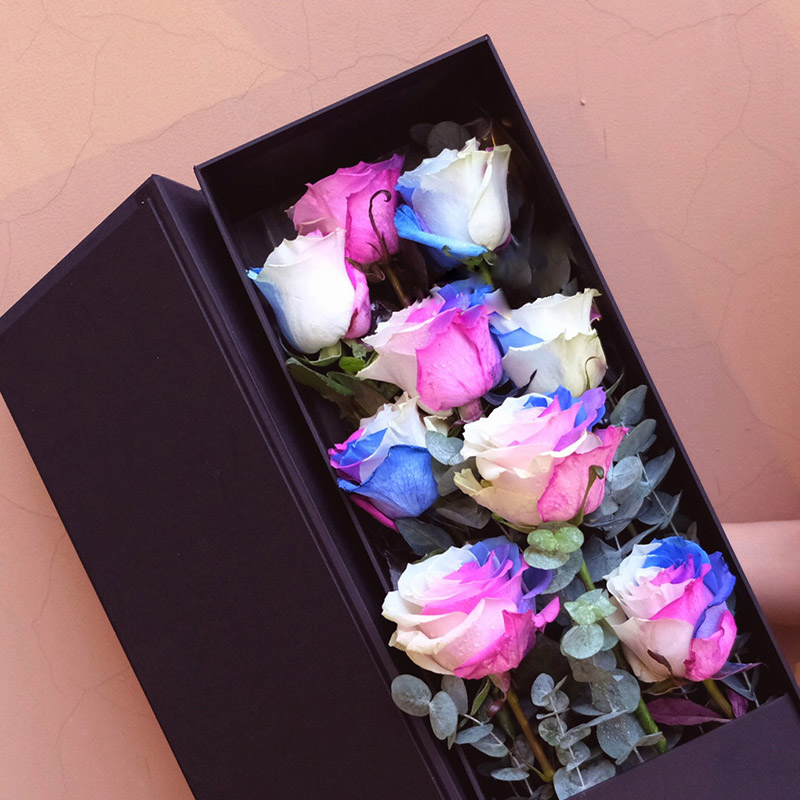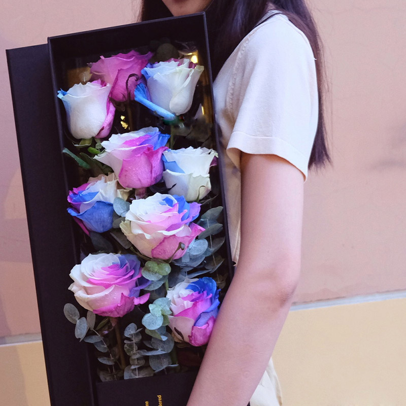 哈哈哈哈,沖著名字來的,藍(lán)顏玫瑰,正好男閨蜜過生日,買個(gè)禮盒裝的鮮花送給她,挫挫他的直男氣質(zhì)哈哈哈哈,鮮花跟網(wǎng)上的圖片一樣好看,我在想怎么把花忽悠回我家