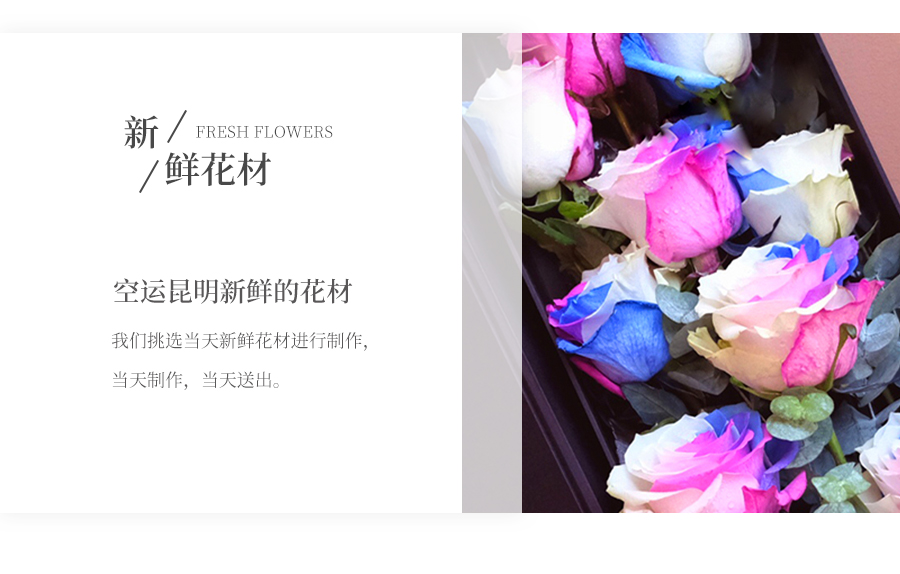由于鮮花包扎的花藝師不同,可能在花束的形式和搭配上與圖片略有小的區(qū)別,但我們保證鮮花的主花材品種、新鮮程度、數(shù)量、顏色與說明一致,感謝您的理解。