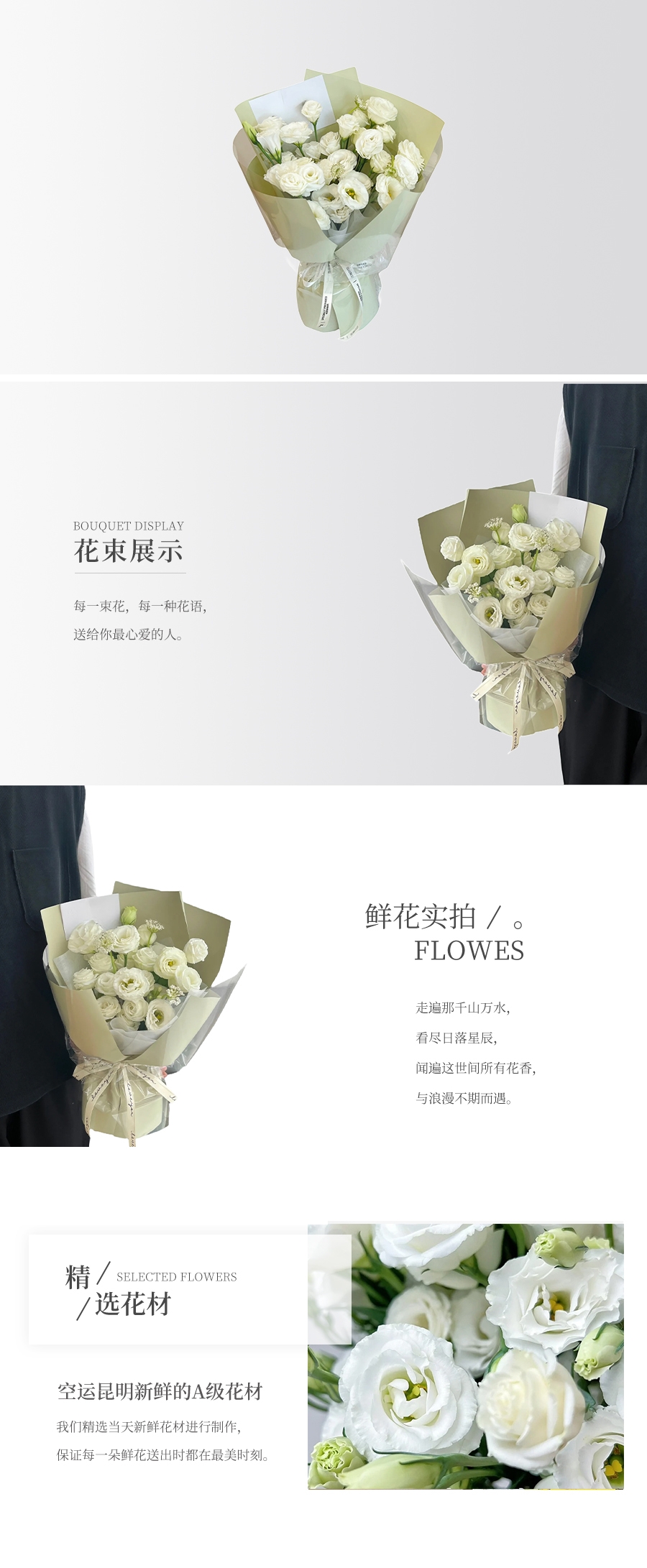 由于鮮花包扎的花藝師不同,可能在花束的形式和搭配上與圖片略有小的區(qū)別,但我們保證鮮花的主花材品種、新鮮程度、數(shù)量、顏色與說明一致,感謝您的理解。