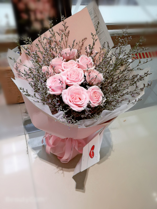 因你而幸福·9枝戴安娜粉玫瑰韓式花束