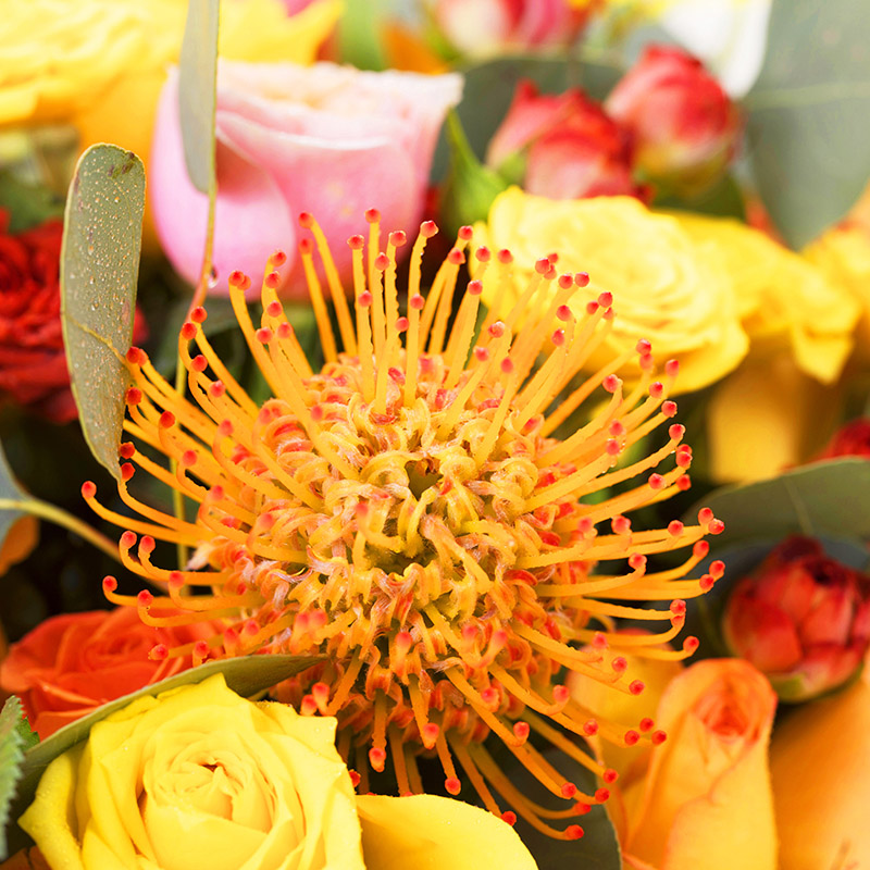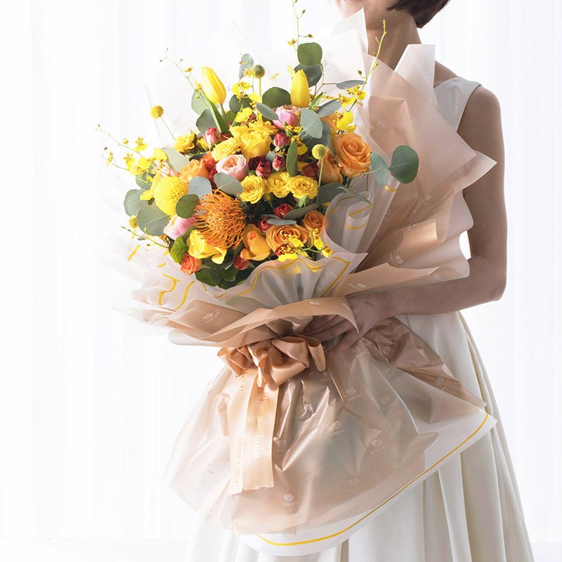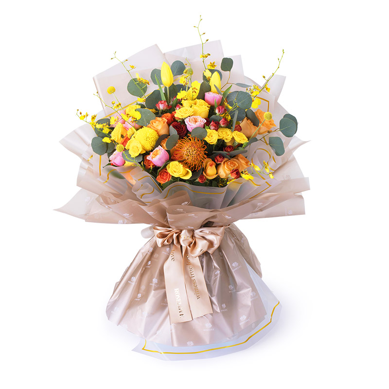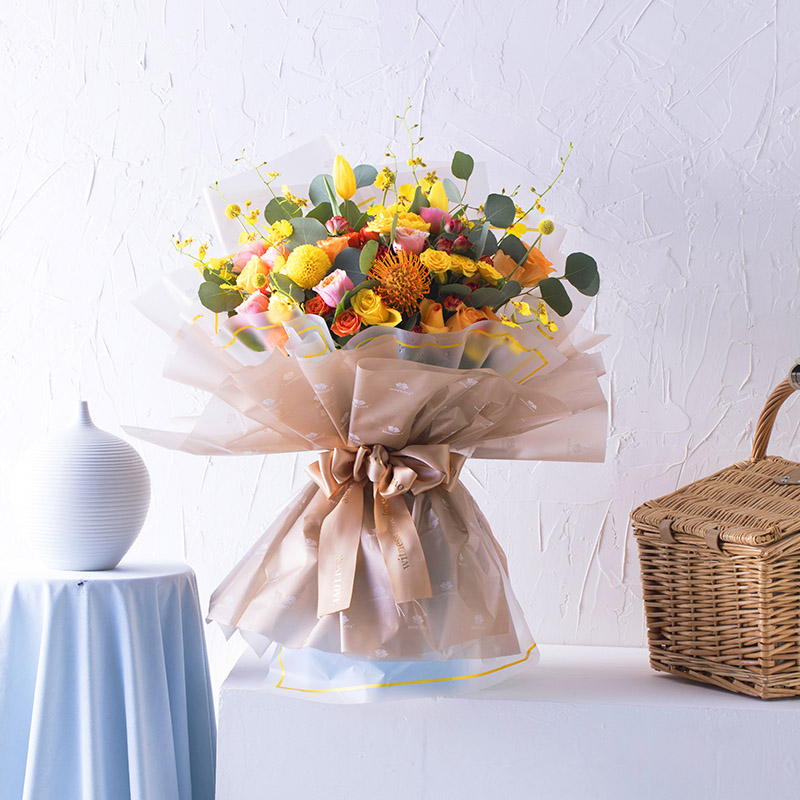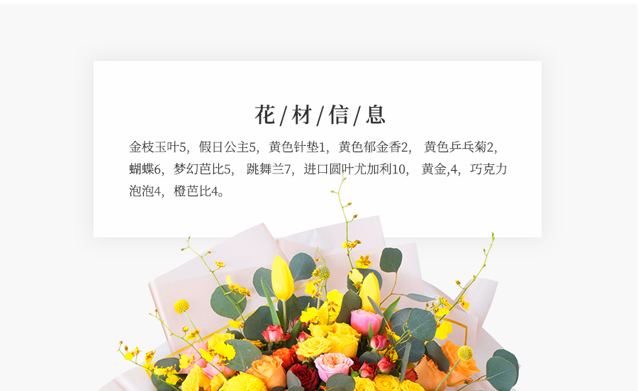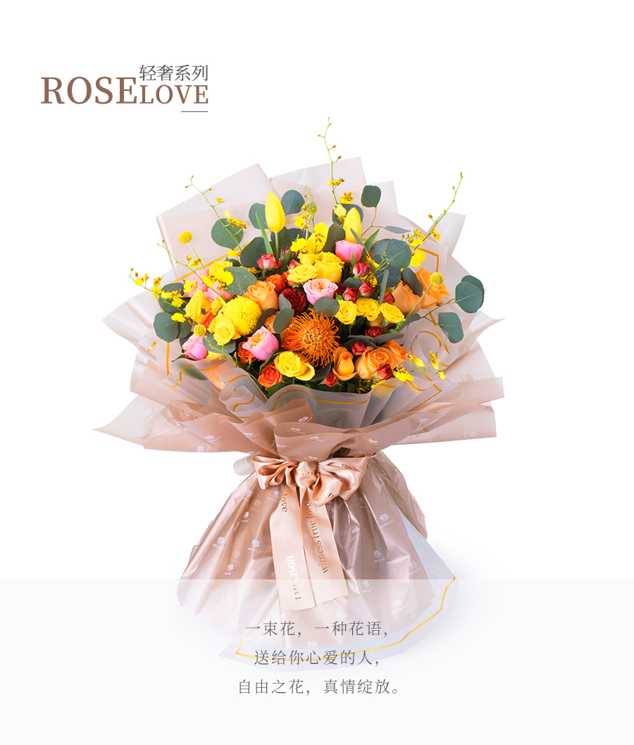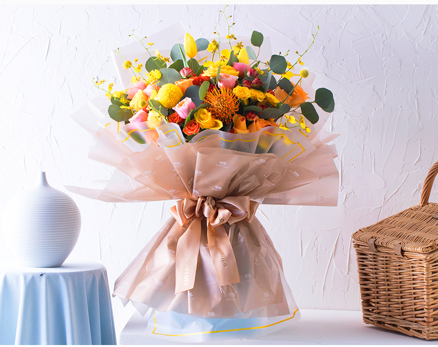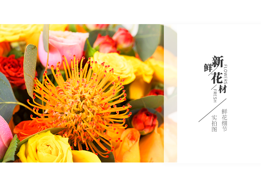 由于鮮花包扎的花藝師不同,可能在花束的形式和搭配上與圖片略有小的區(qū)別,但我們保證鮮花的主花材品種、新鮮程度、數(shù)量、顏色與說(shuō)明一致,感謝您的理解。