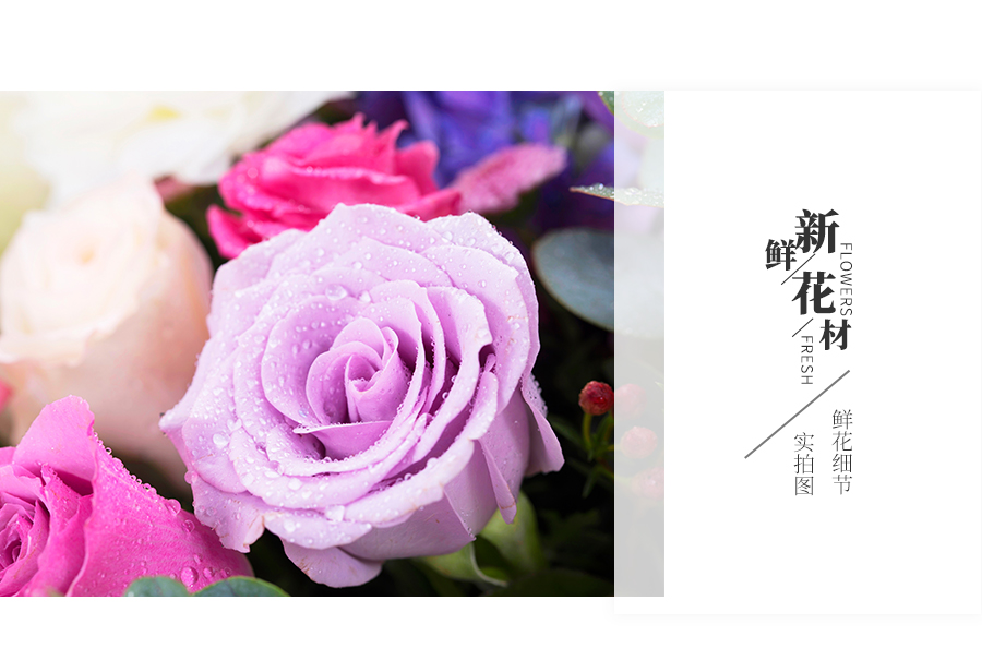 由于鮮花包扎的花藝師不同,可能在花束的形式和搭配上與圖片略有小的區(qū)別,但我們保證鮮花的主花材品種、新鮮程度、數(shù)量、顏色與說明一致,感謝您的理解。