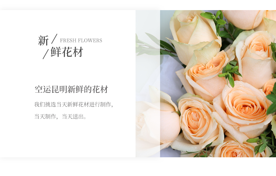 由于鮮花包扎的花藝師不同,可能在花束的形式和搭配上與圖片略有小的區(qū)別,但我們保證鮮花的主花材品種、新鮮程度、數(shù)量、顏色與說明一致,感謝您的理解。