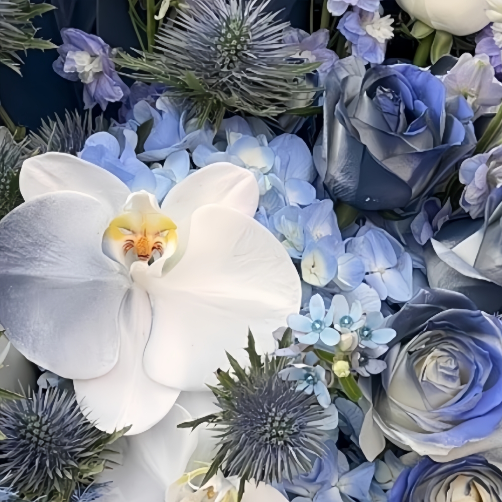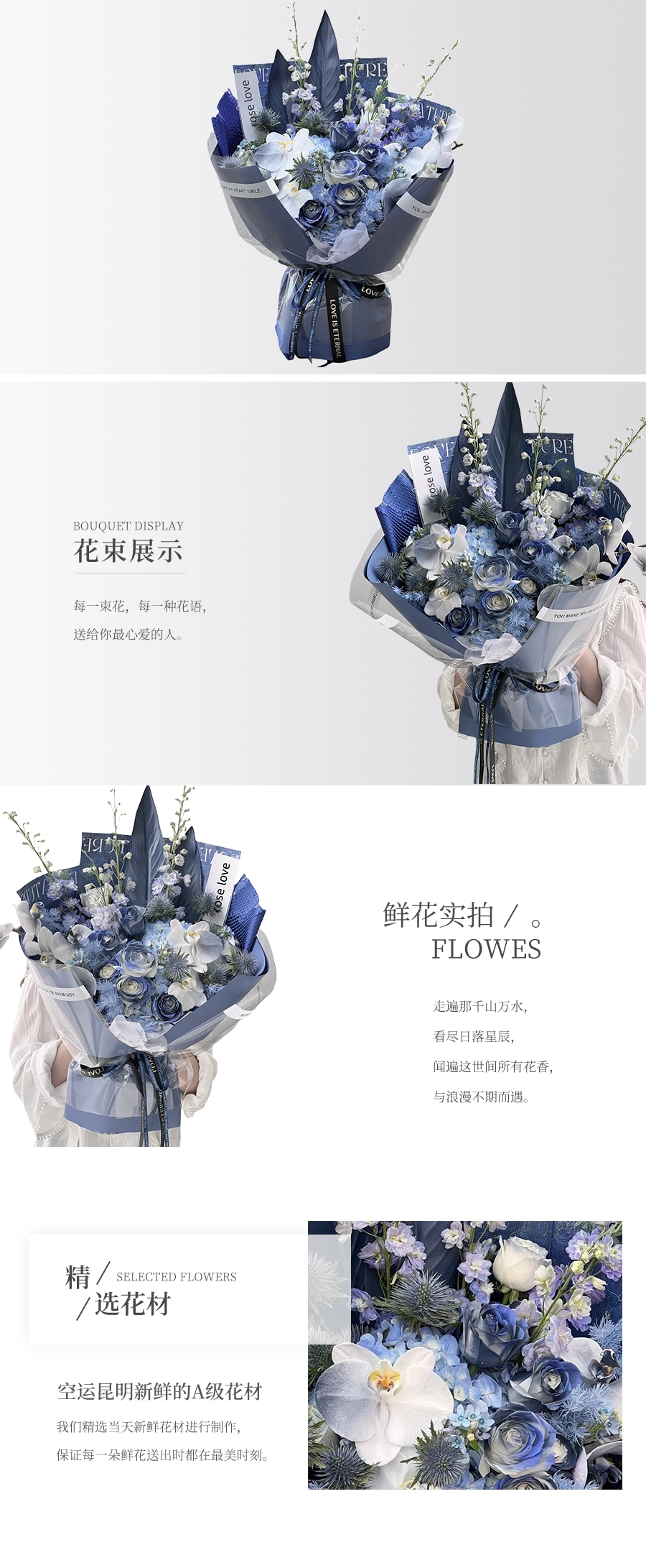 由于鮮花包扎的花藝師不同,可能在花束的形式和搭配上與圖片略有小的區(qū)別,但我們保證鮮花的主花材品種、新鮮程度、數(shù)量、顏色與說明一致,感謝您的理解。