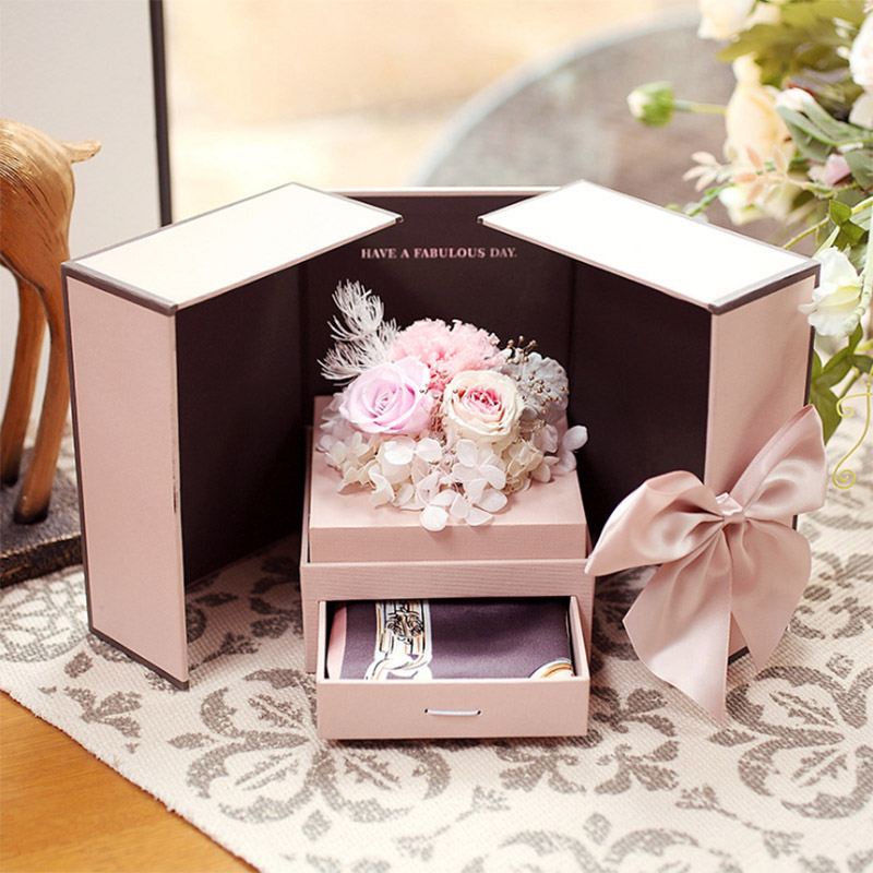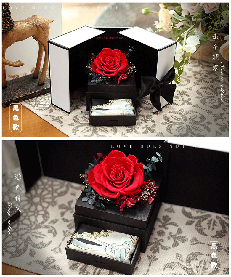 甜風(fēng)迎面來(lái)·玫瑰永生花絲巾雙開(kāi)門禮盒