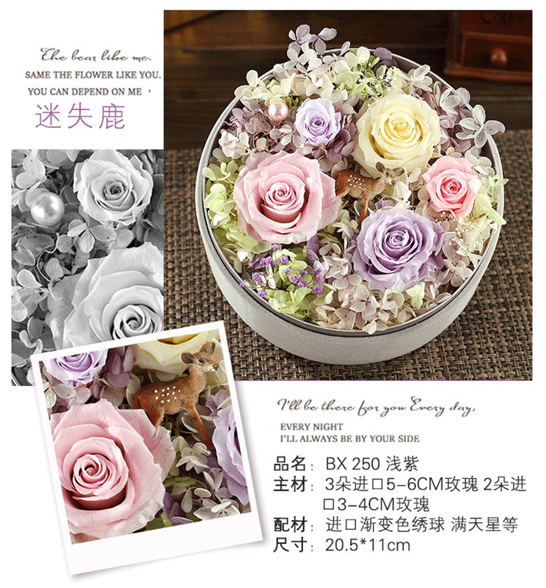 禮盒收到了,永生花做的很精致,非常漂亮的一款,老婆也非常喜歡,還有就是網站客服態(tài)度非常好,回答了不少問題,非常滿意!?。?!