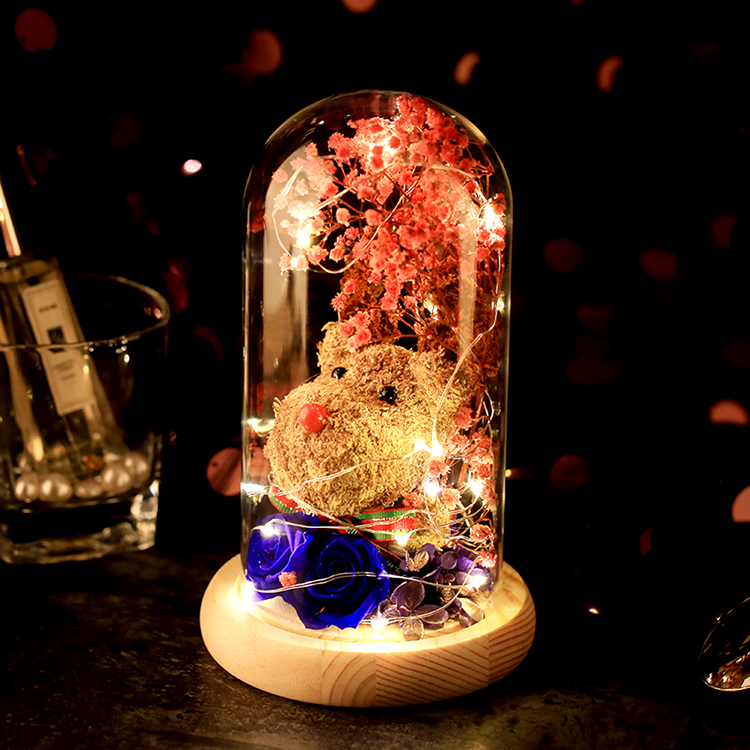 月升夜色濃·藍色妖姬發(fā)光永生花筒