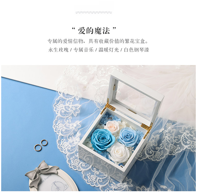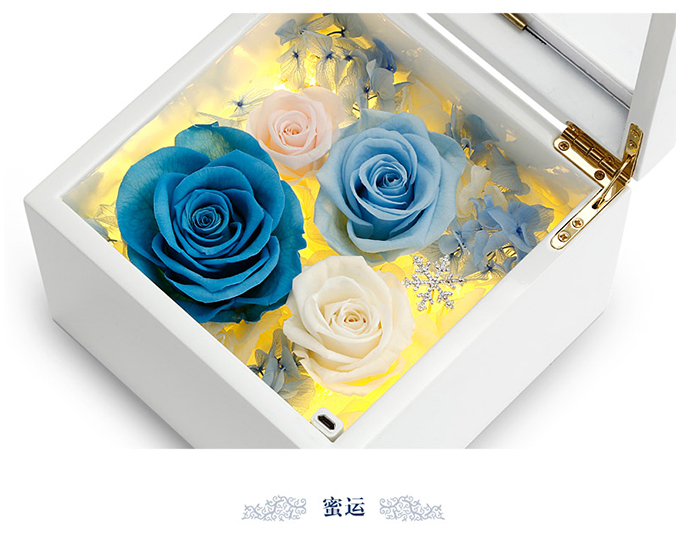 生活如詩篇·發(fā)光玫瑰永生花心形音樂盒
