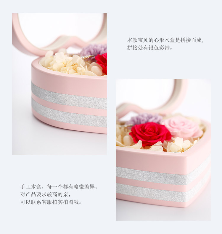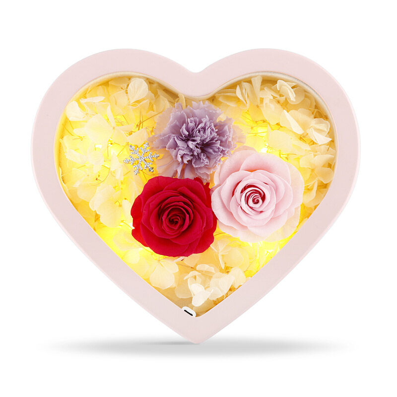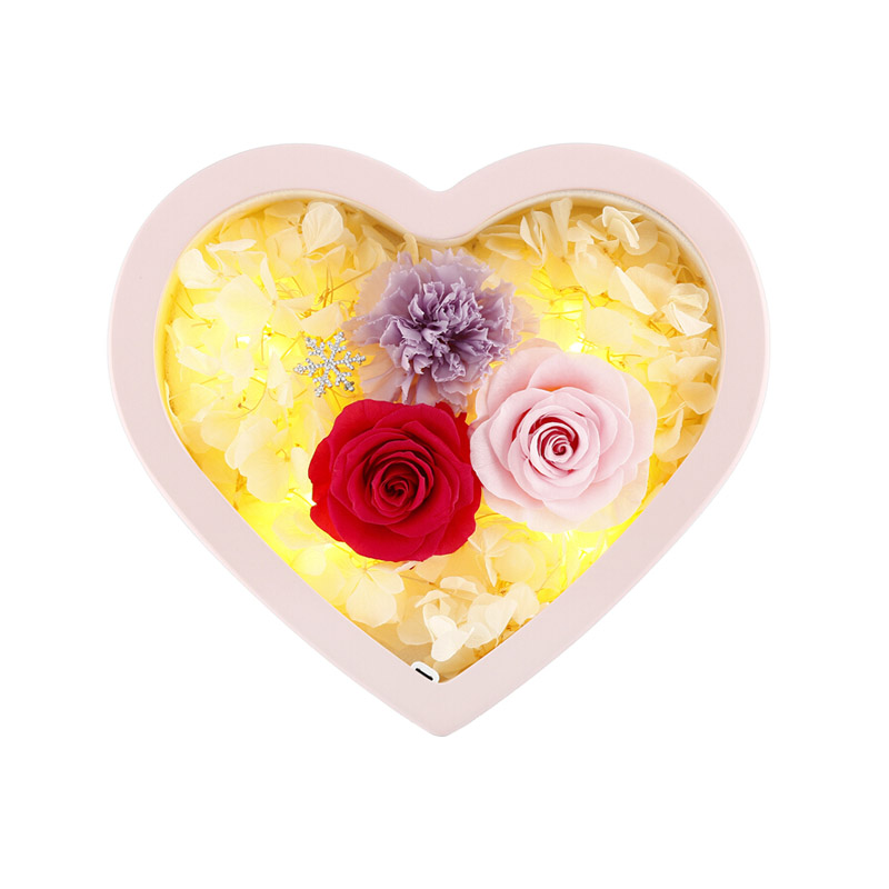 生活如詩篇·發(fā)光玫瑰永生花心形音樂盒