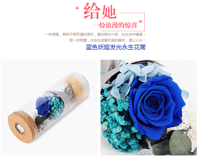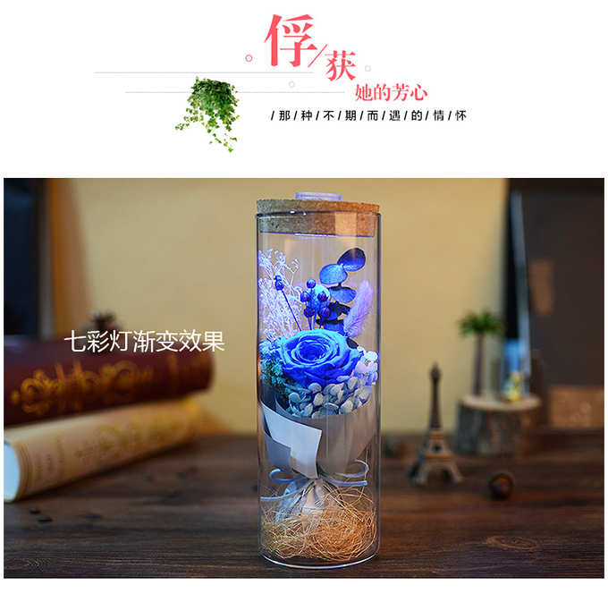 月升夜色濃·藍(lán)色妖姬發(fā)光永生花筒