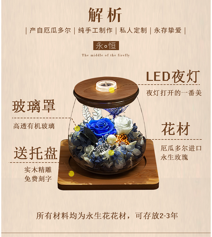 永生花收到了真是太驚喜了,物流好快我還怕到結(jié)婚紀(jì)念日的時(shí)候收不到呢,這下能和老婆吃一頓燭光晚餐了,哈哈