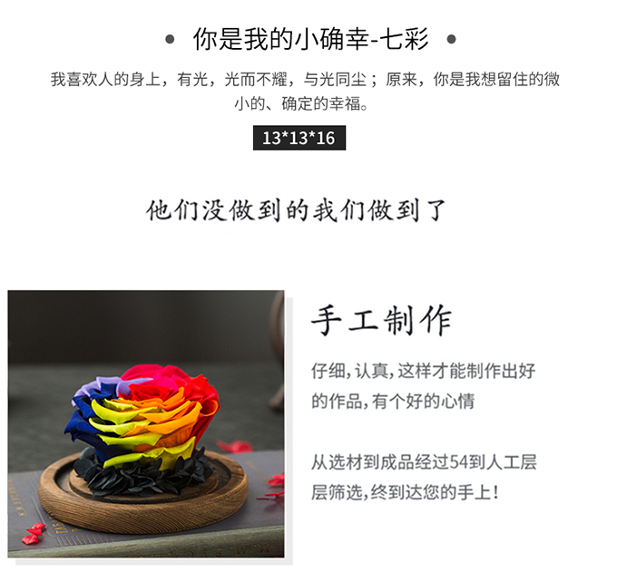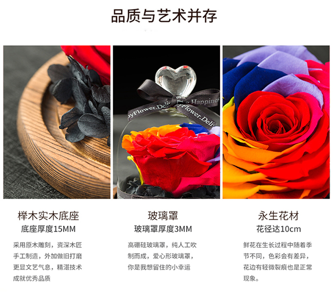 永生花我還是滿意的,挺好看,包裝很嚴實,就是不值得送給她,收了禮物還要跟我分手,算了,你們好好幸福把