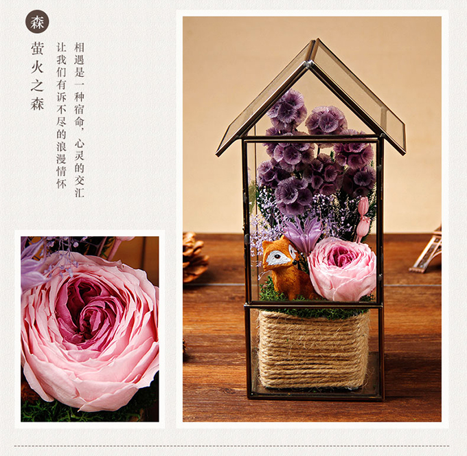 很棒的永生花,感覺(jué)還是玻璃外殼的比較好,現(xiàn)在這款平時(shí)都是關(guān)著,還可以防塵,具備觀賞的作用,挺好的