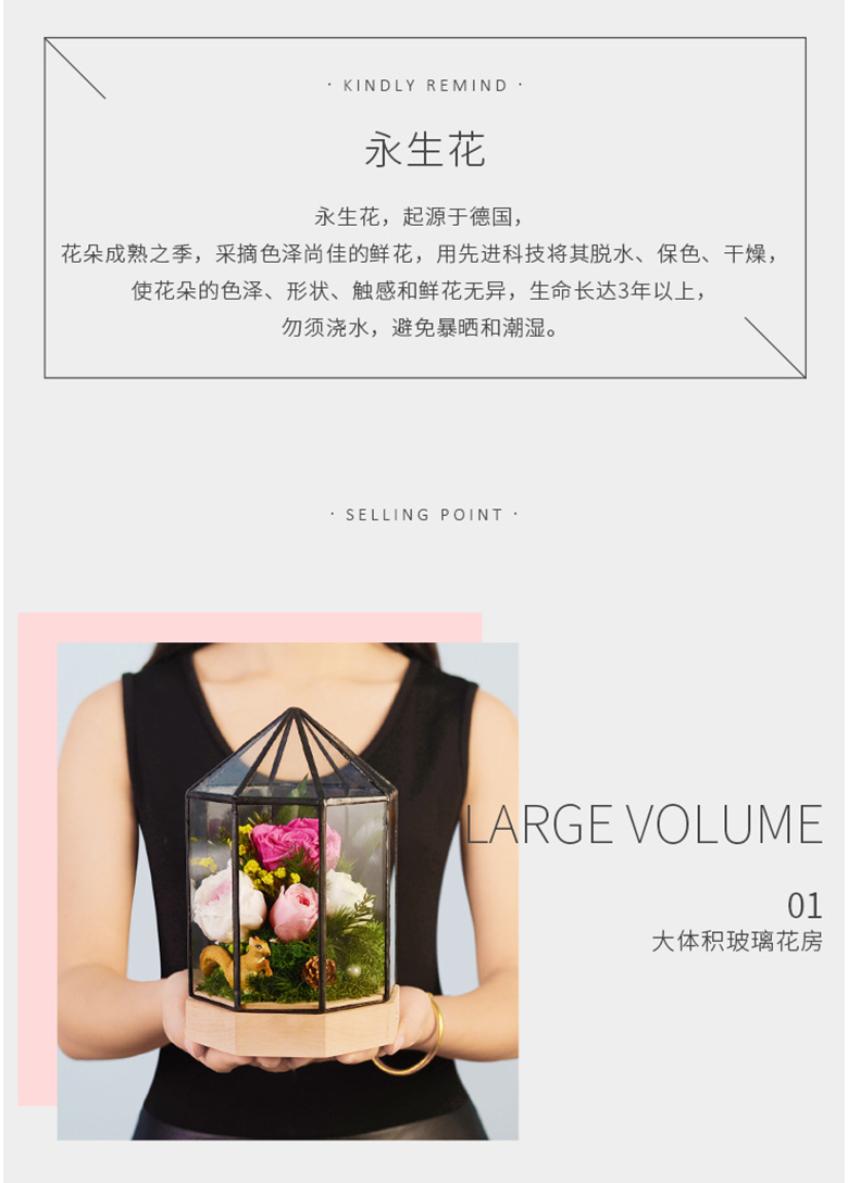儀式感很強,性價比確實高,這么精美的永生花我覺得是很值得的,老婆很喜歡,還哭了,哈哈哈